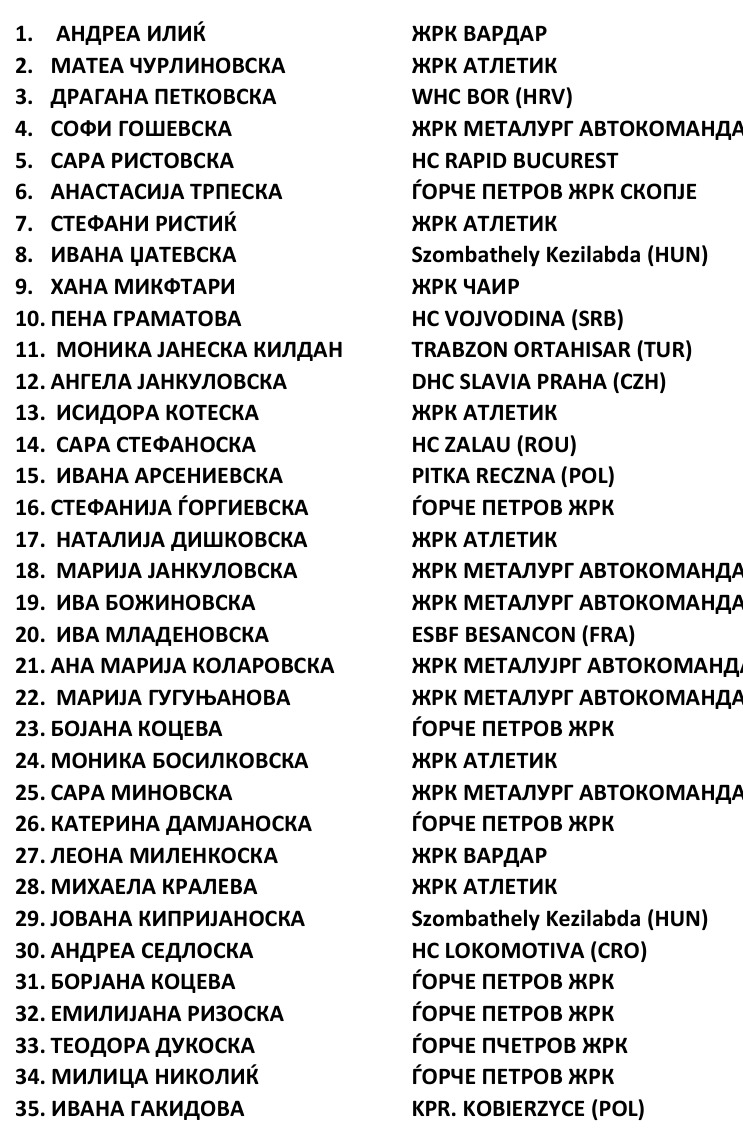 Селекторот Кристијан Грчевски одбра 35 ракометарки со кои ќе ја игра октомвриската фаза од квалификациите за ЕП 2026.