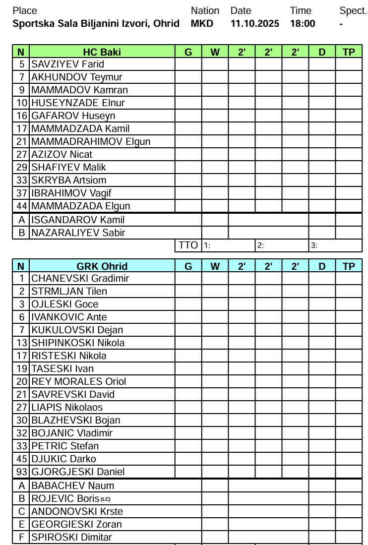 Првиот чекор прво, а тоа е Баки од Азербејџан, уште еднаш ќе го потенцираме како загревачки круг затоа што оваа екипа со два меча во Охрид каде што дојде со само 12 ракометари, не смее да биде закана за пласман во следното коло.