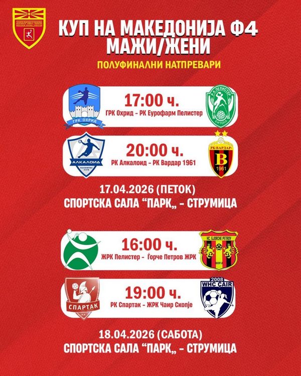 Со еден билет ќе може да се проследат полуфиналните натпревари од машкиот и женскиот Ф4, кои ќе се одиграат на 17 и 18 април во СС„Парк“ – Струмица.